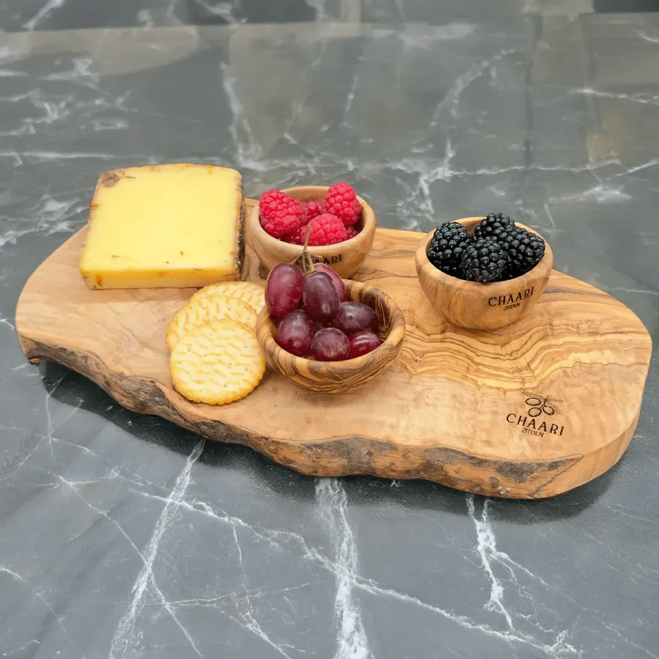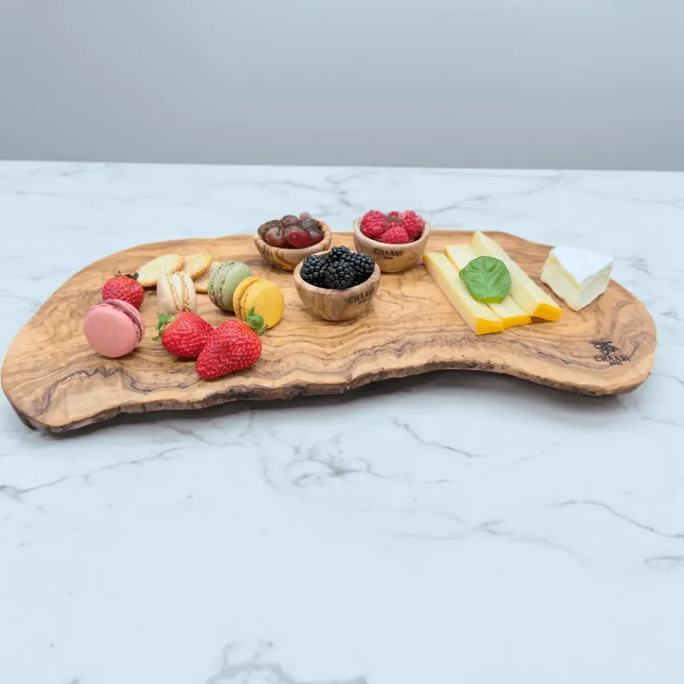 Ob als Schneidebrett in der Küche, als elegantes Käsebrett bei der nächsten Feier oder als dekoratives Servierbrett — dieses Olivenholzbrett ist ein wahrer Allrounder. Die natürliche Oberfläche verleiht jedem Gericht eine mediterrane Note.